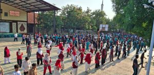 Lapangan utama MAN 1 Indramayu dipenuhi suasana meriah dengan nuansa merah putih. Para peserta kompak mengenakan pakaian olahraga bernuansa bendera kebangsaan, menambah semarak suasana kebersamaan dan nasionalisme. Gerakan senam dilakukan serentak dengan iringan musik yang membangkitkan semangat, menciptakan keceriaan sekaligus kekompakan seluruh warga madrasah.